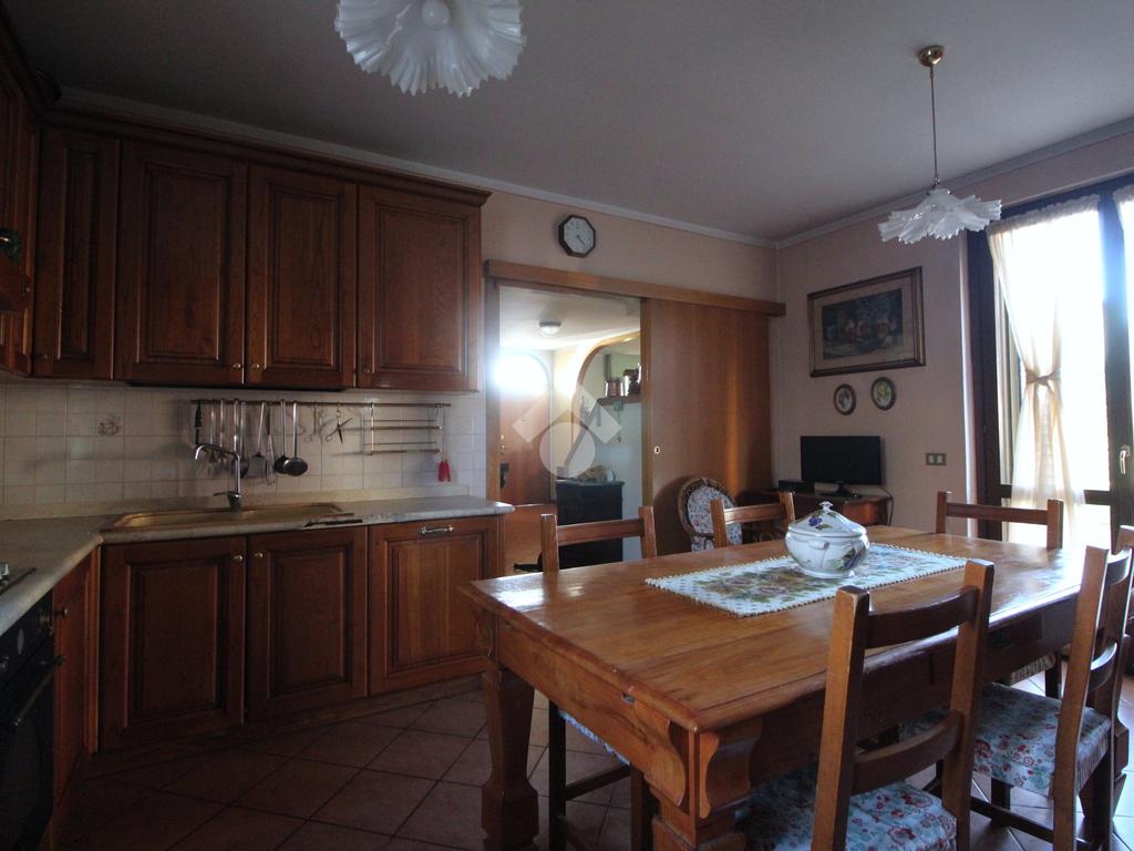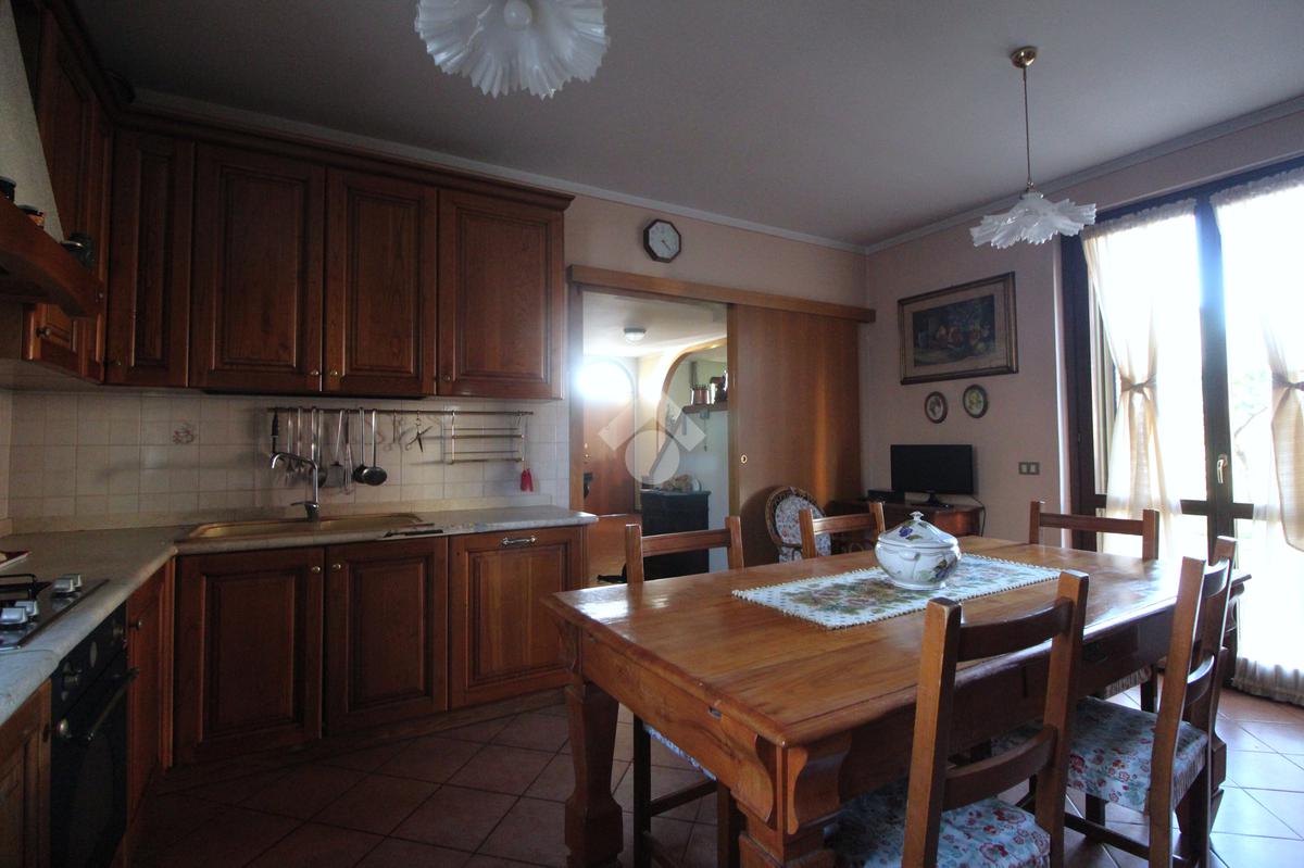 Al piano terra si trovano un ampio e luminoso soggiorno con accesso al portico e al giardino sul retro, corridoio che conduce a una cucina abitabile che può ospitare un tavolo per 6 persone, servita da portafinestra che dà accesso al portico sul retro, e bagno di servizio finestrato.